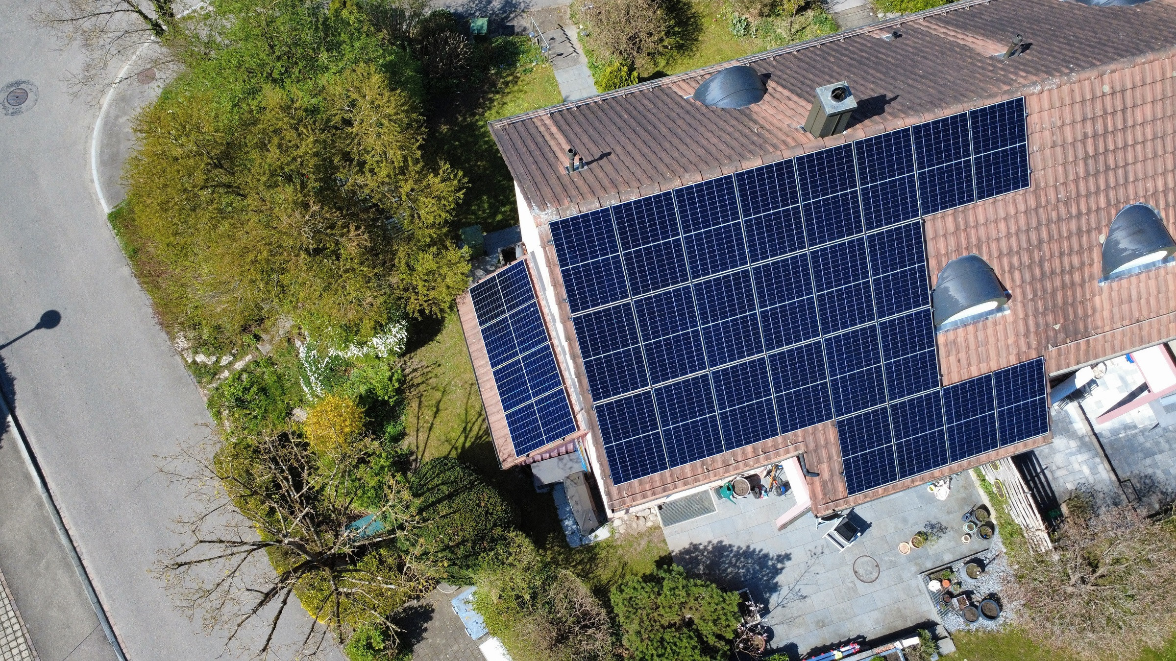 Auf einem Ziegedach Ost-West Ausrichtung.