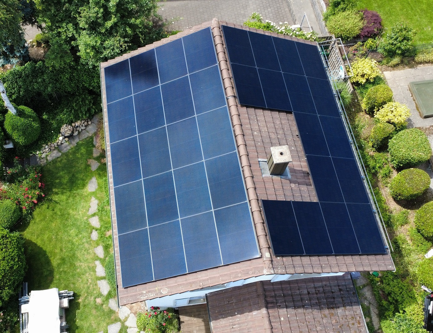Auf einem Ziegedach Süd-Nord Ausrichtung.