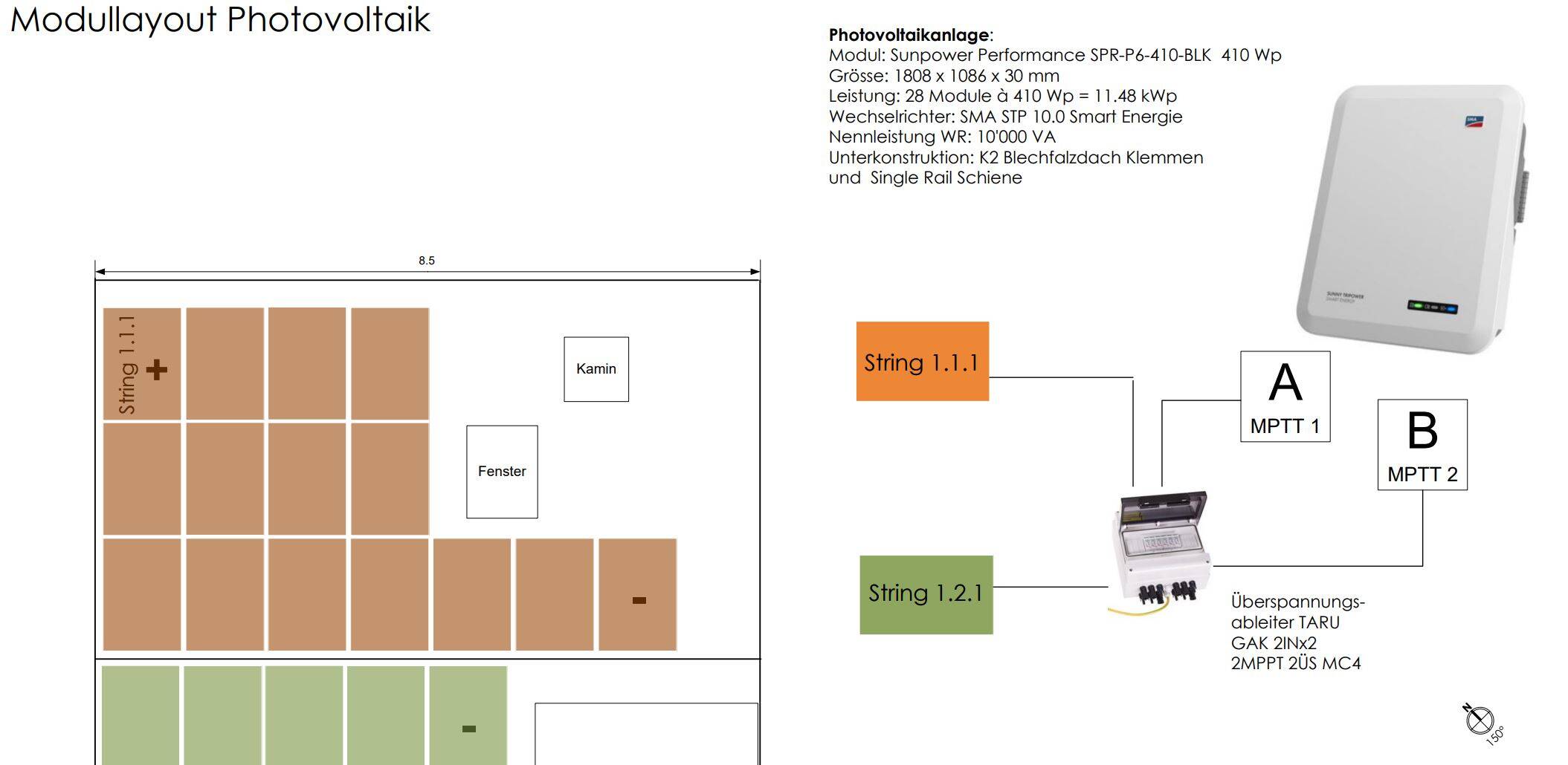 PV-Anlage mit 28 SunPower Modulen à 410 Wp